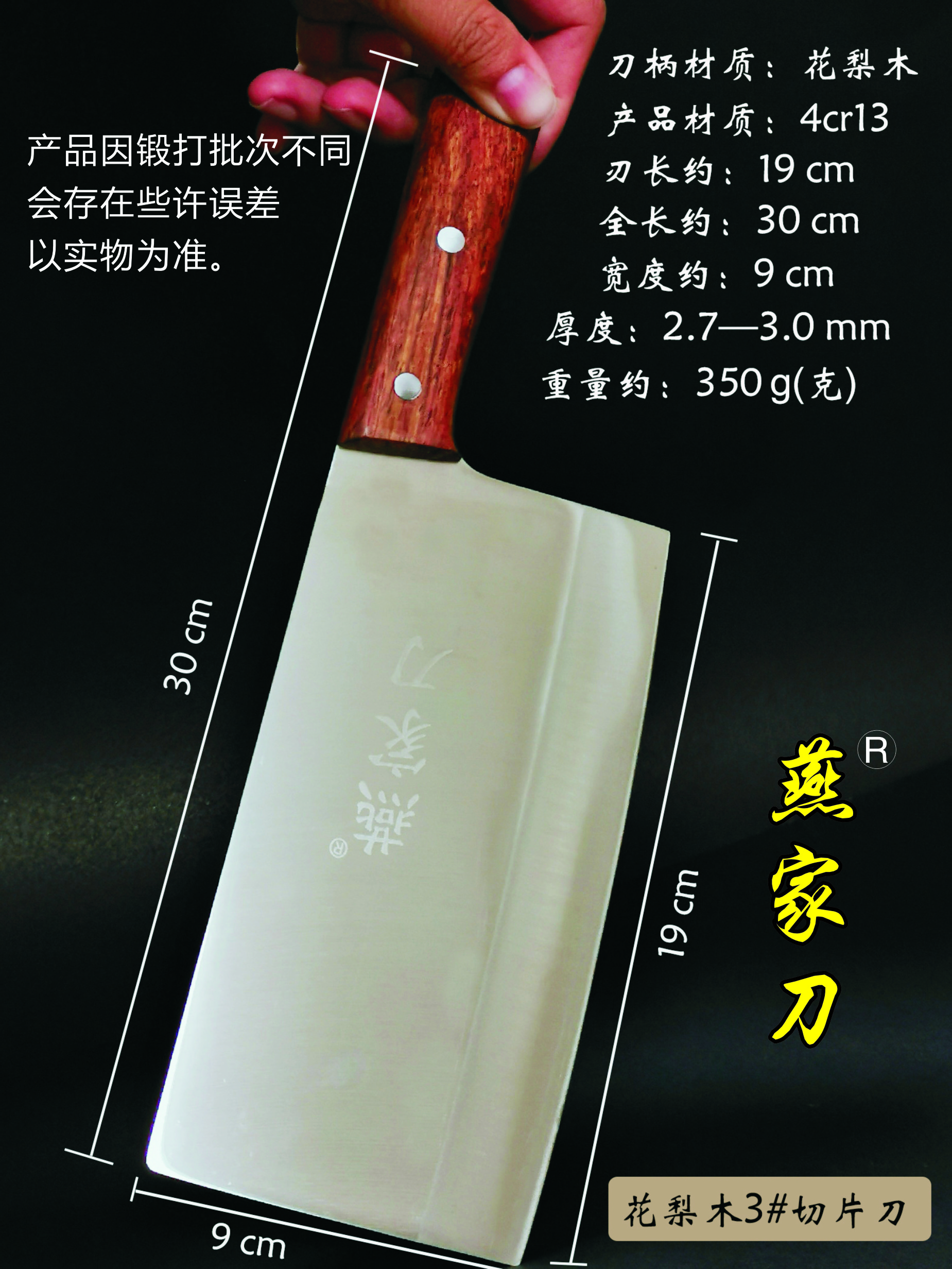 樂山燕家刀具有限公司(公司前身為燕佳鐵匠鋪),公司坐落于美麗的佛都之鄉(xiāng)樂山嘉州,在全國各地有上千家代理經(jīng)銷點(diǎn),公司專業(yè)銷售、設(shè)計(jì)、制作各類刀具。秉承一貫鍛造三精要求,即選料精、用料精、工藝精。所選材料全部產(chǎn)自滇東鐵礦優(yōu)產(chǎn)區(qū)。本品牌刀具堅(jiān)持千挑萬選為材,千錘百煉為刀的手工鍛造工藝宗旨。具有鋒利耐磨、持久耐用,用料上乘,硬度高、韌度強(qiáng)的特點(diǎn)!